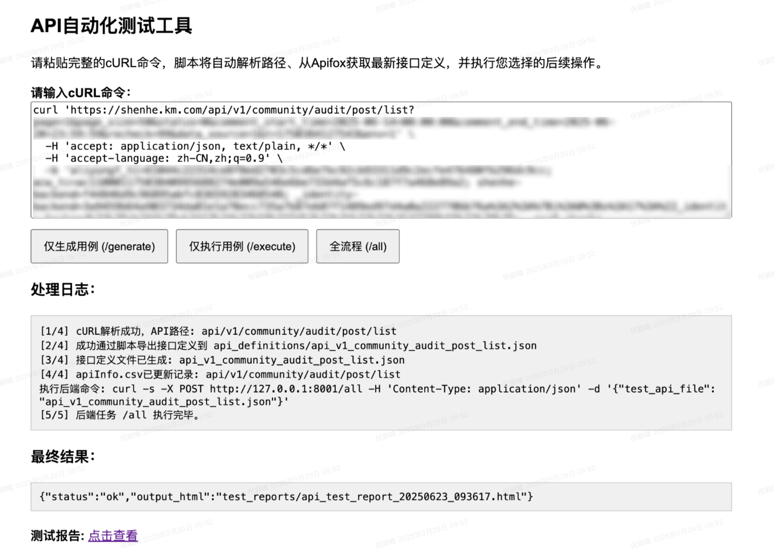 - 操作简单:用户通过在页面上粘贴信息和点击按钮,就可以启动整个测试流程,降低了工具的使用难度。