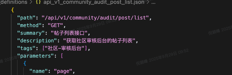 请使用 MCP 读取apifox的接口信息并存储到api_definitons目录中,生成信息格式参考api_definitons/api_definition_sample.json,读取接口信息:api/v1/community/audit/post/list