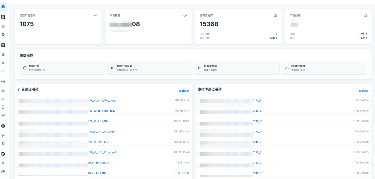 - 功能深度: 涵盖素材管理、广告创建、广告管理、广告投放策略配置、Facebook CAPI 对接、实时数据看板等复杂业务。